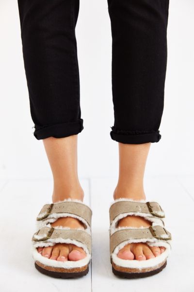 Image Name: Birkenstock Arizona Shearling Taupe Suede Sandal - Urban Outfitters